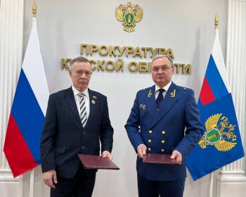 4 февраля 2026 г. в прокуратуре Курской области состоялось подписание соглашения о сотрудничестве между прокурором Курской области Алексеем Цукановым и руководителем Курской областной общественной организации Общероссийской общественной организации инвалидов «Всероссийское ордена Трудового Красного знамени общество слепых» Русланом Тихоновым.