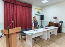 Член Дмитриевской МО ВОС Кривич М.В. и главный библиотекарь...