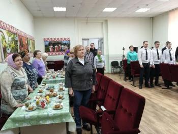 Отец Сергий отслужил пасхальный молебен и поздравил всех присутствующих с Пасхой. В своей беседе он рассказал о традициях праздника: о куличе, Артосе, яйце и истории их происхождения. Также священник объяснил суть Пасхи — что жертва Иисуса Христа дарует верующим свободу от греха, плена дьявола и духовной смерти. Он подчеркнул, что со своей стороны человеку необходимо трудиться над своей душой, и привел примеры из жизни святых угодников, боровшихся с грехами.